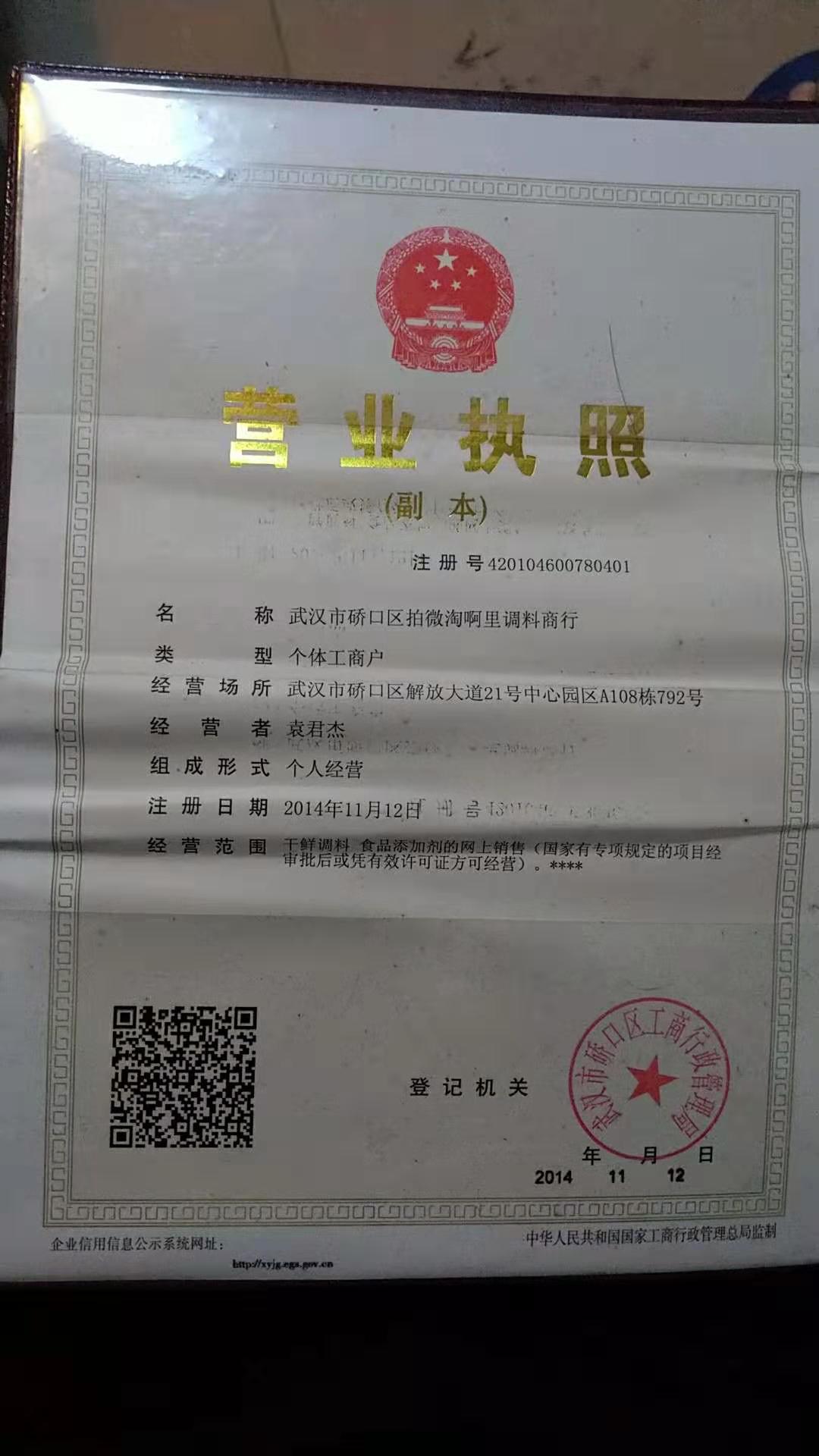 - 企业名称:武汉市硚口区拍微淘啊里调料商行